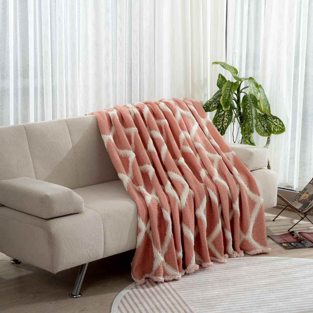 Caretta Quilt features a 100% cotton muslin outer layer and a polyester filling that never touches the skin, offering soft, lightweight comfort suitable even for sensitive skin. Crafted with natural and sustainable production methods, this quilt adds a refined and healthy touch to any bedroom with its variety of color options.