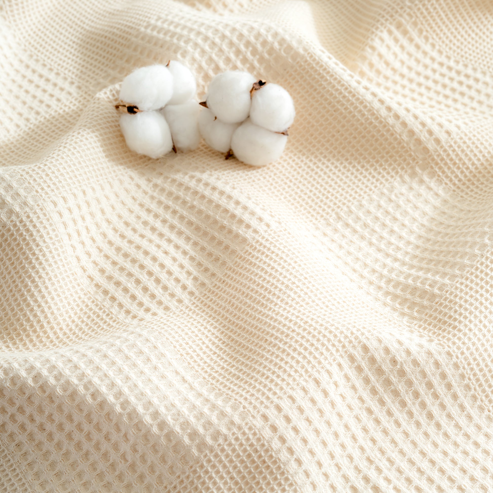 Serra Blanket is a lightweight and breathable throw designed for year-round use, featuring a soft texture and a modern square-knit design. Made from 100% cotton, it is gentle on the skin, natural, and comfortable. Its decorative look adds a subtle touch of elegance to any living space.